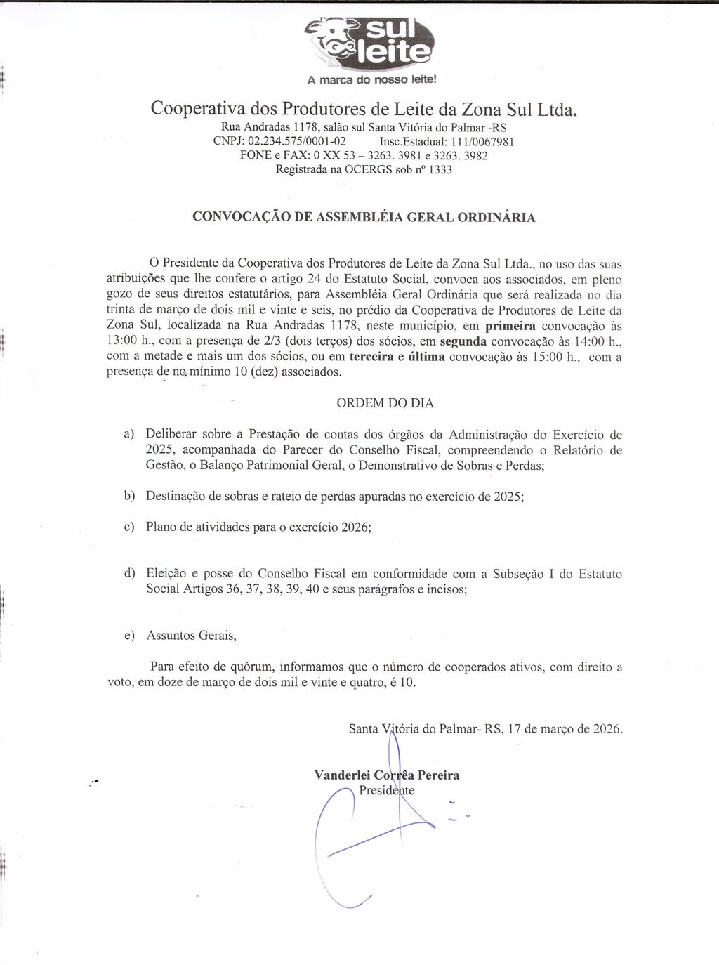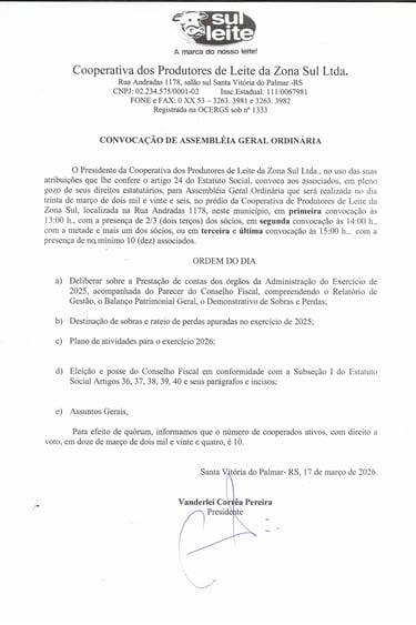 CONVOCAÇÃO DE ASSEMBLÉIA GERAL ORDINÁRIA