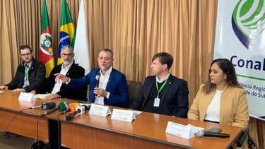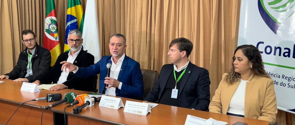 Legenda: Evento de anúncio da rodada de COV especial, em Porto Alegre