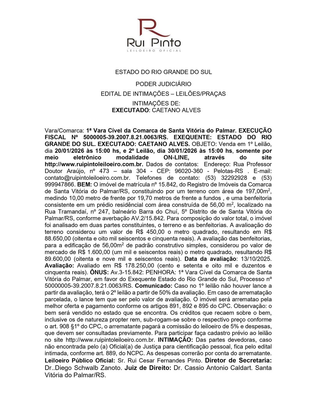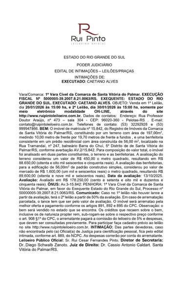 EDITAL DE INTIMAÇÕES – LEILÕES/PRAÇAS INTIMAÇÕES DE: EXECUTADO: CAETANO ALVES