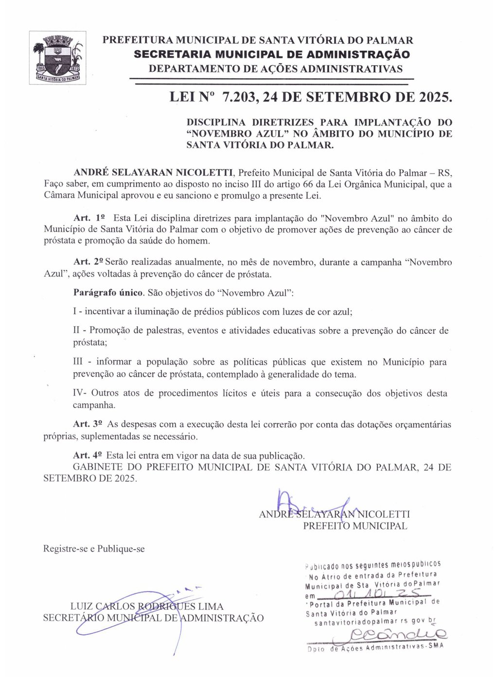 LEI No 7.203, 24 DE SETEMBRO DE 2025.