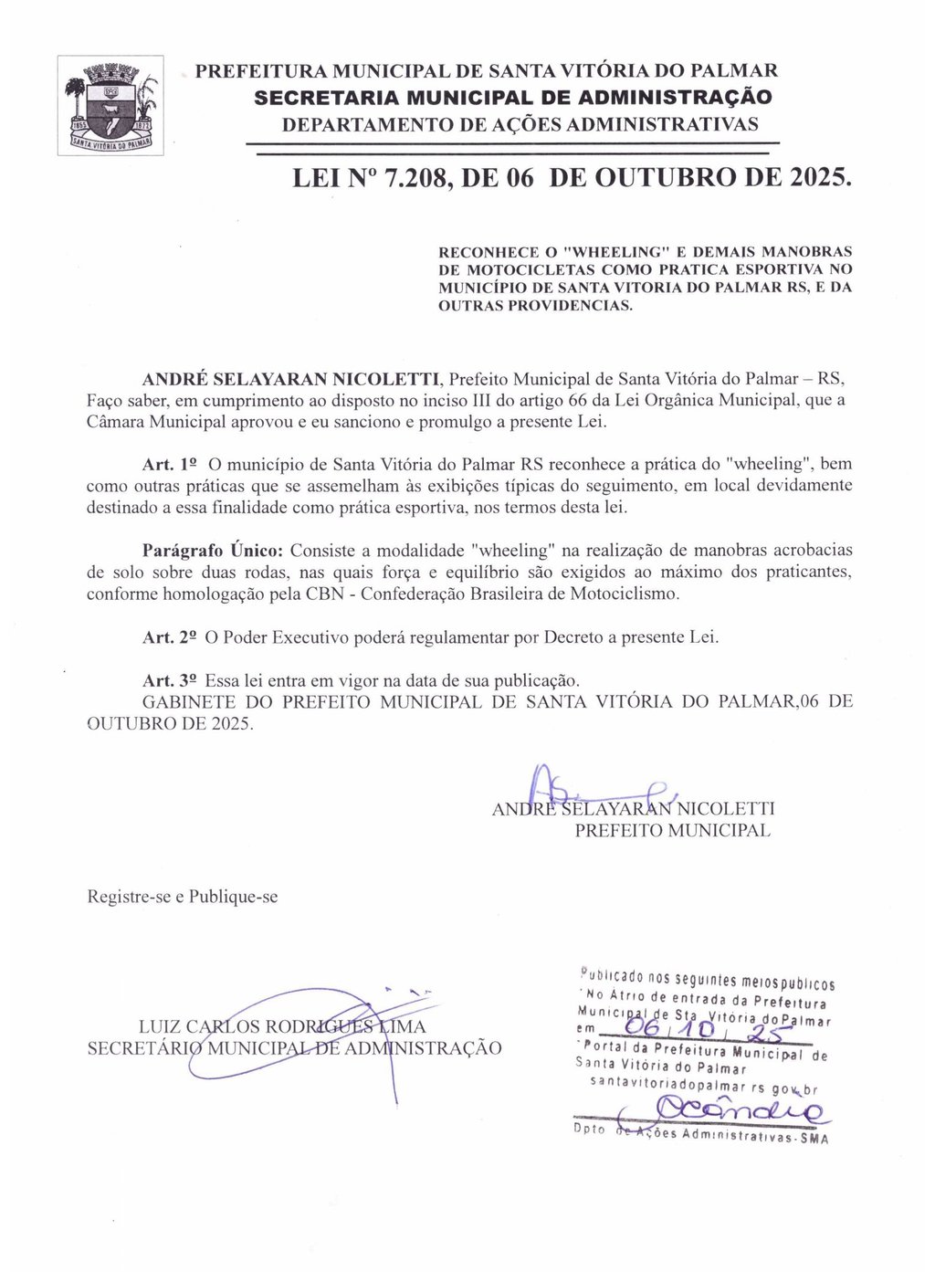 LEI No 7.208, DE 06 DE OUTUBRO DE 2025.