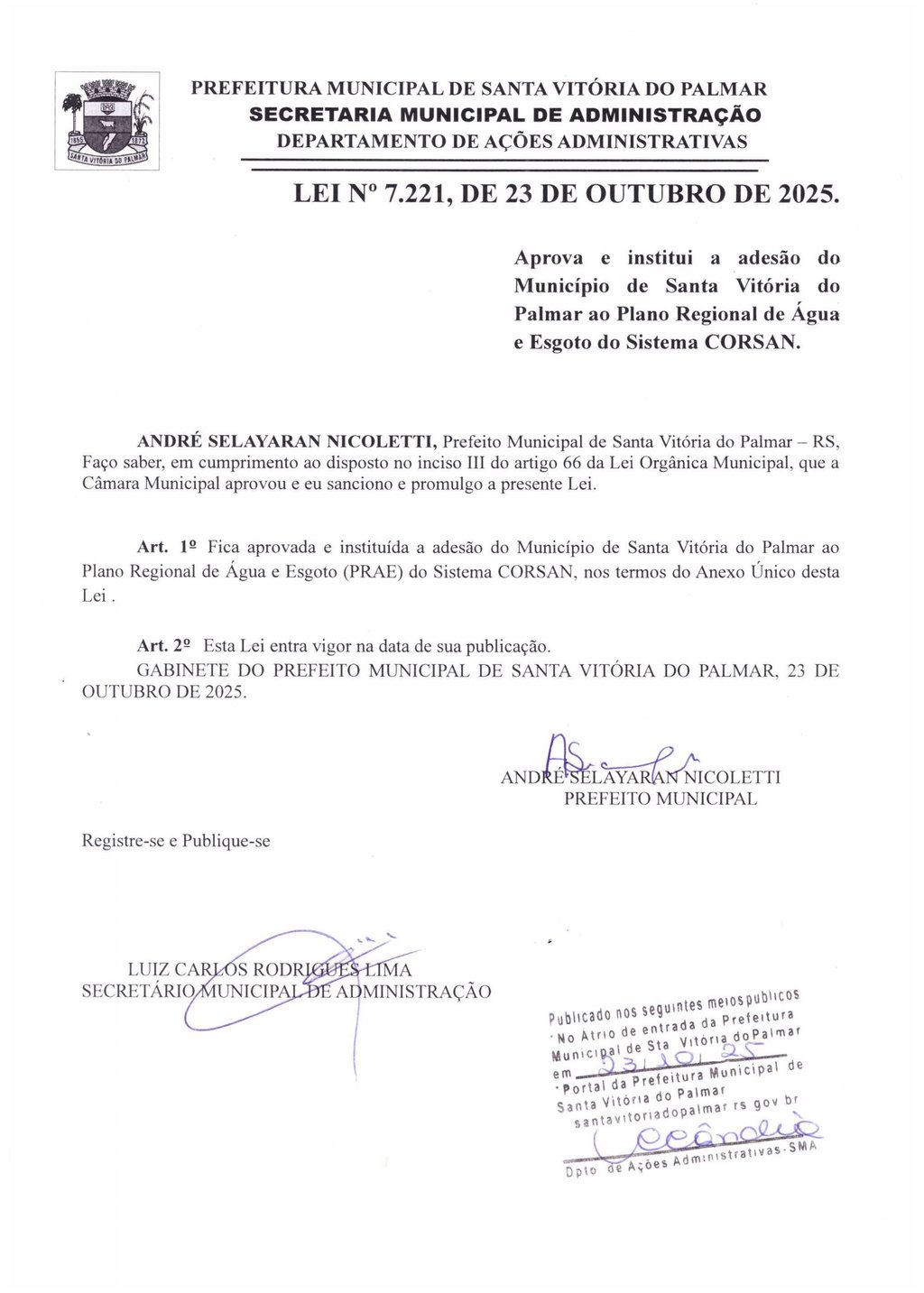 LEI Nº 7.221, DE 23 DE OUTUBRO DE 2025.