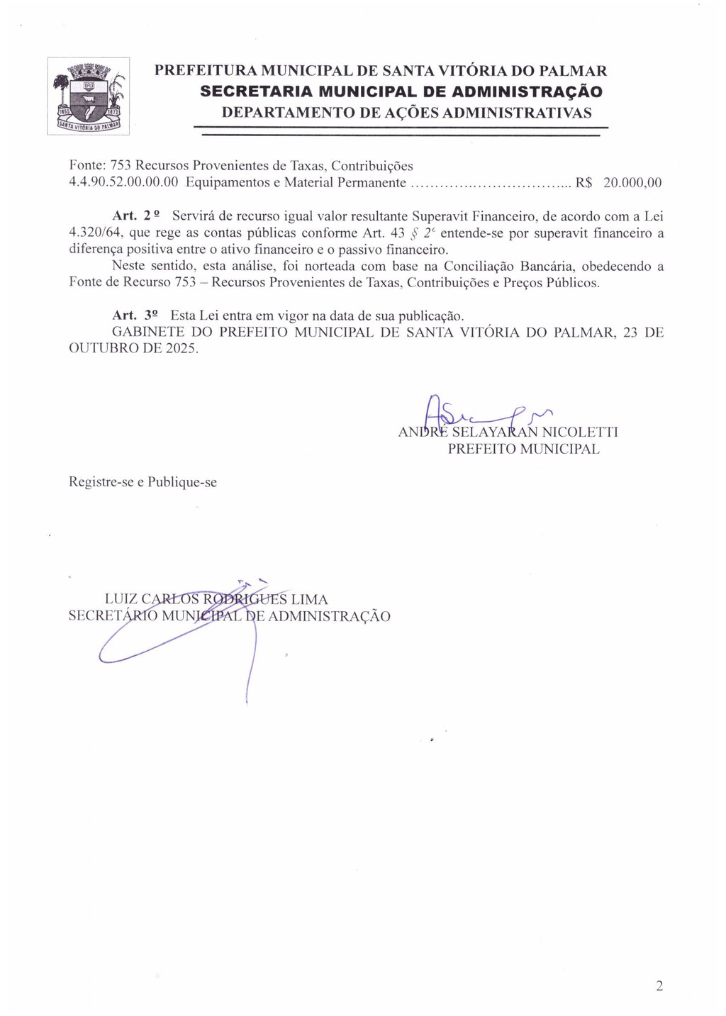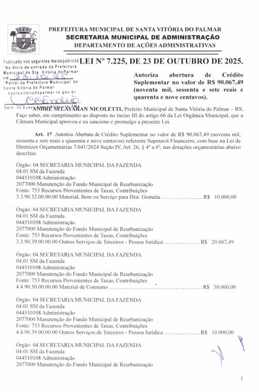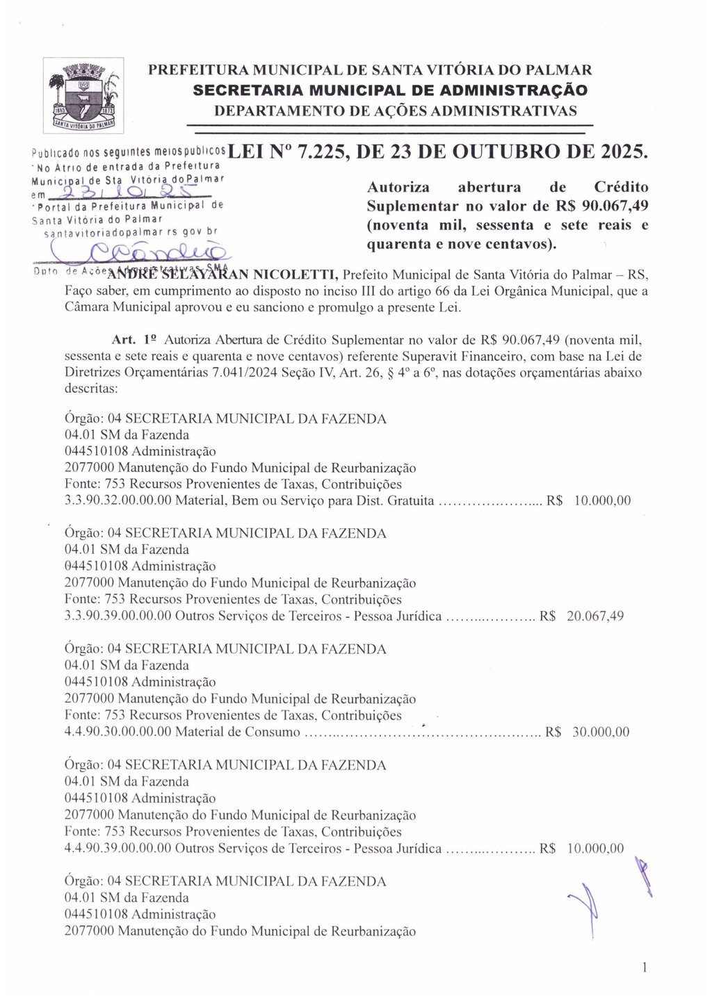 LEI Nº 7.225, DE 23 DE OUTUBRO DE 2025.