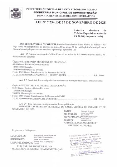 LEI Nº 7.254, DE 27 DE NOVEMBRO DE 2025.