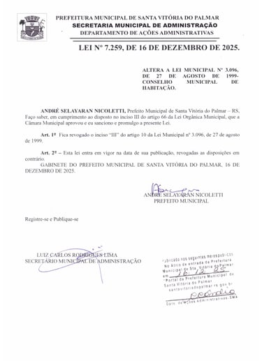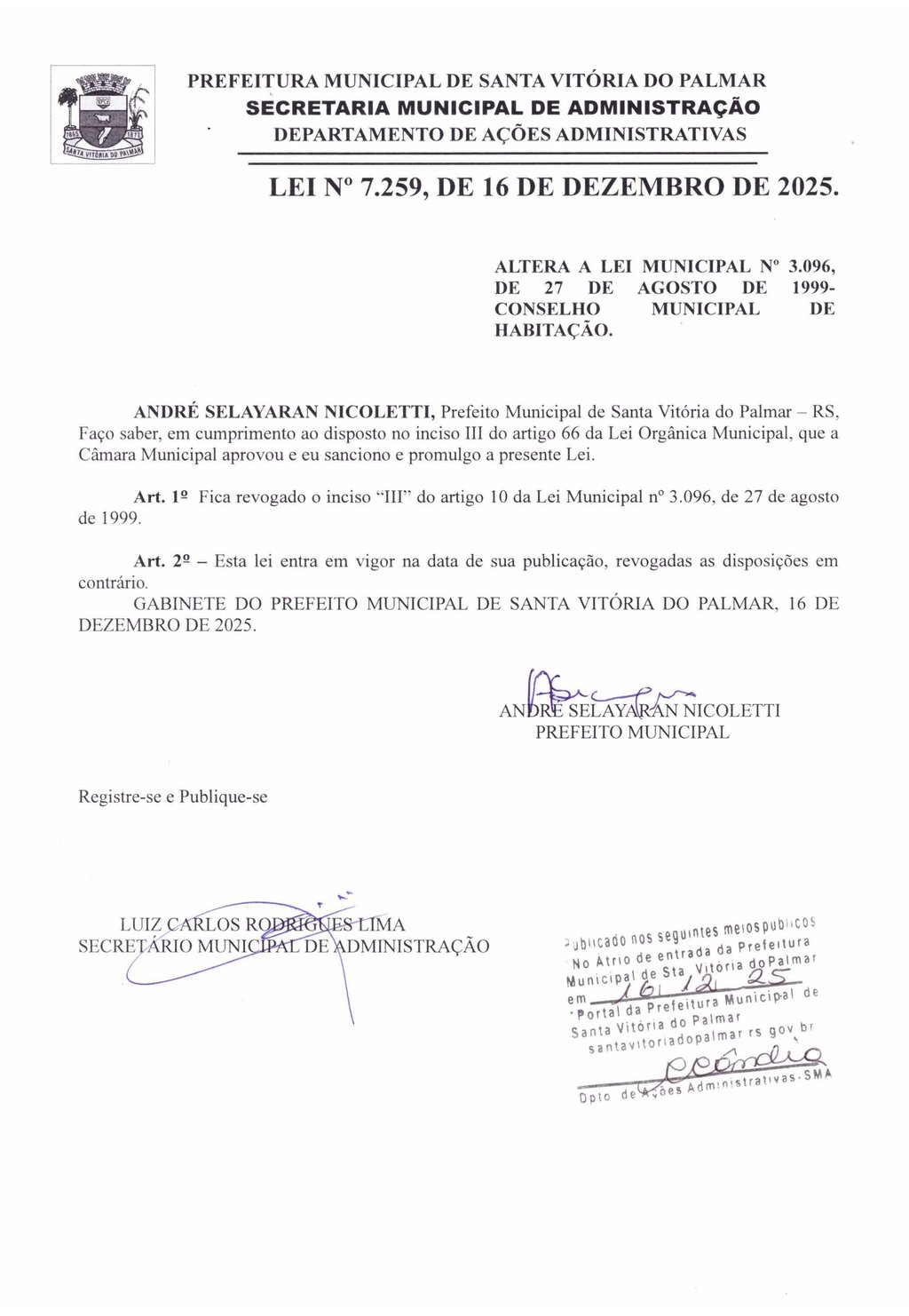 LEI Nº 7.259, DE 16 DE DEZEMBRO DE 2025.