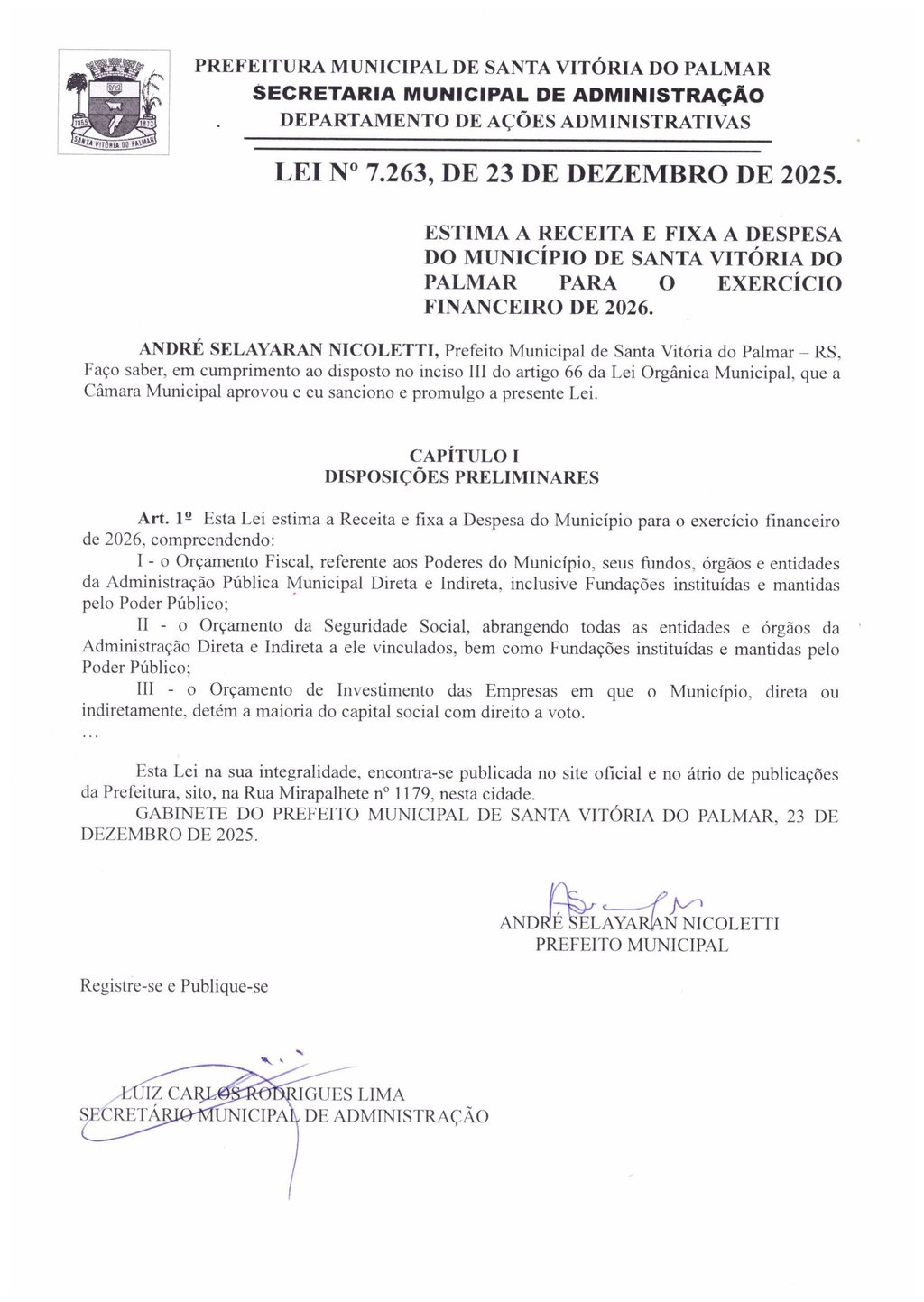 LEI Nº 7.263, DE 23 DE DEZEMBRO DE 2025.