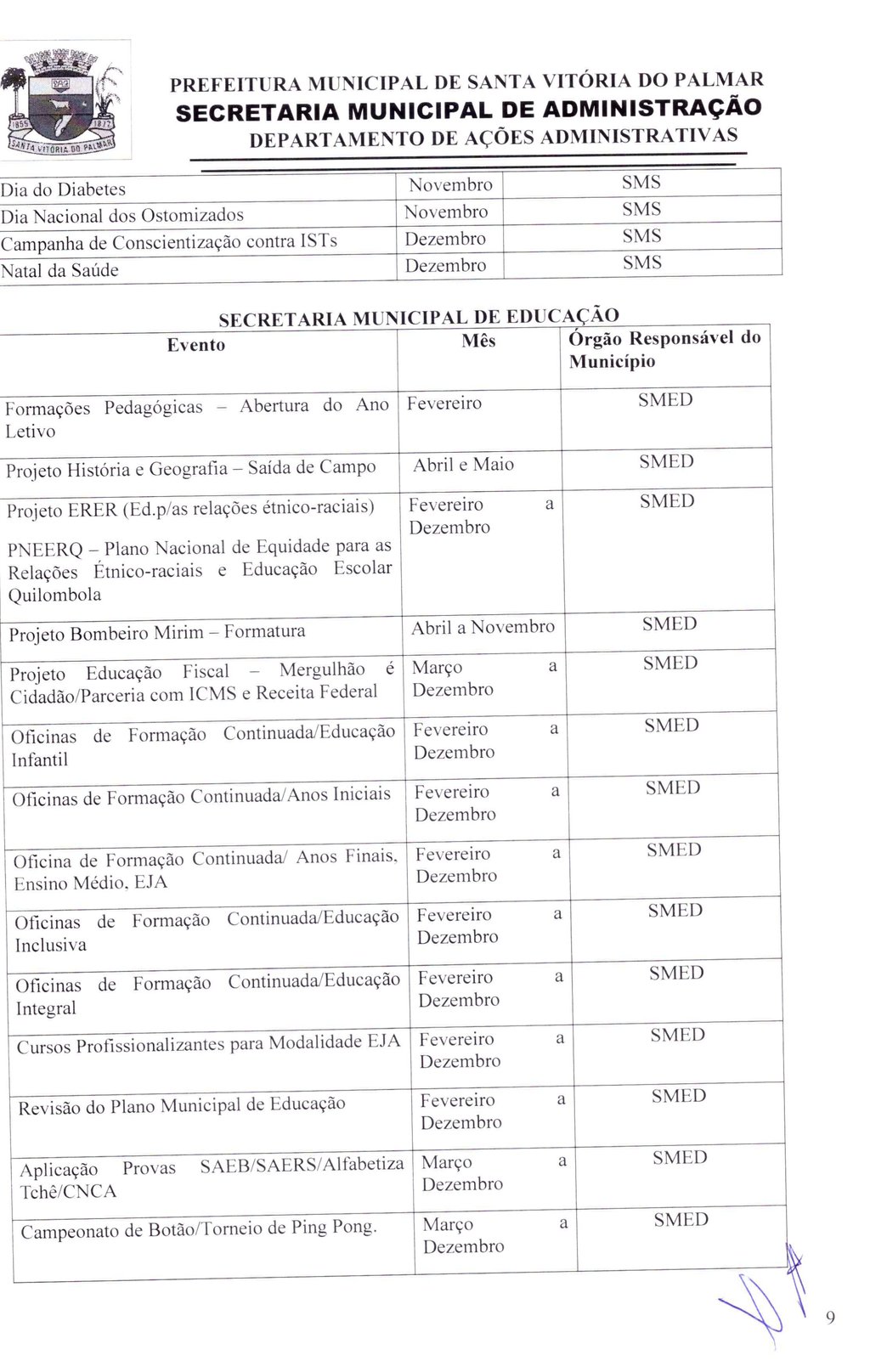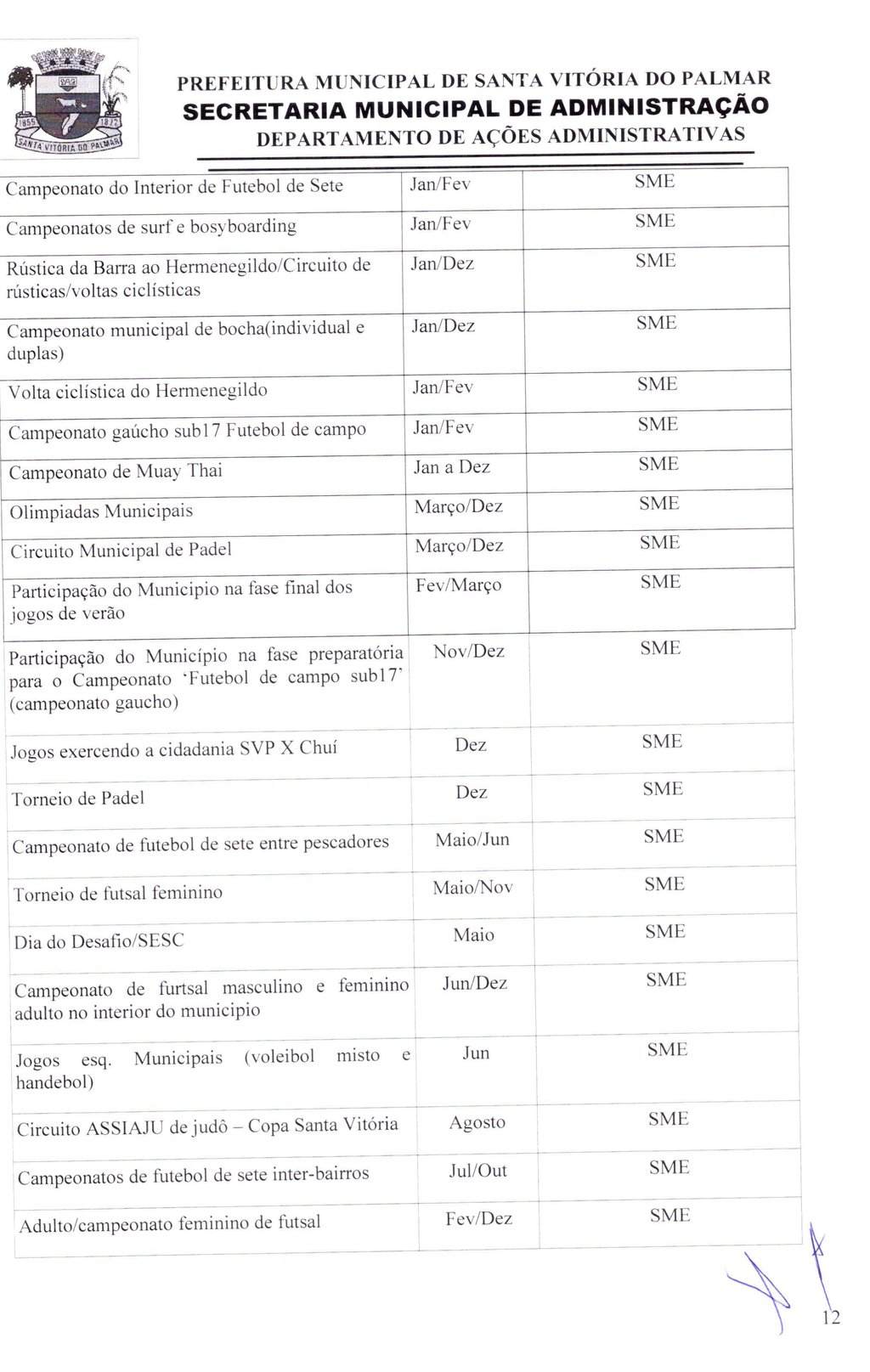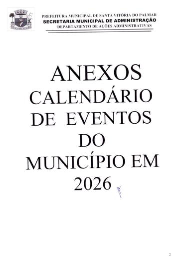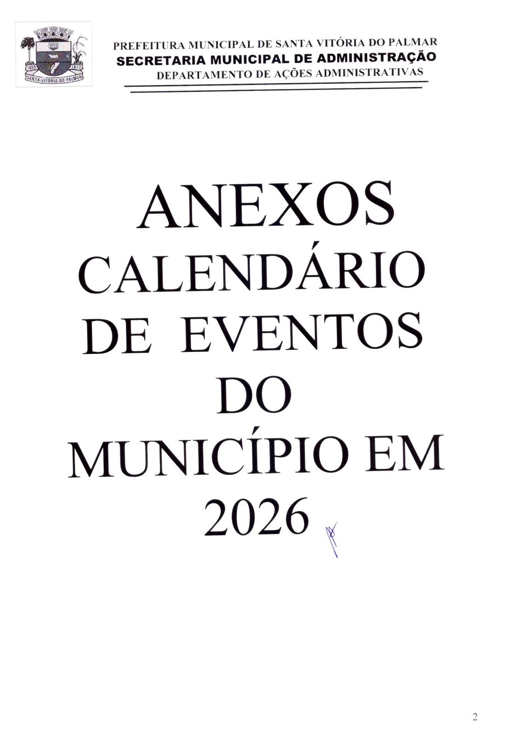 Aprova o Calendário de Eventos do Município de Santa Vitória do Palmar para o ano de 2026.