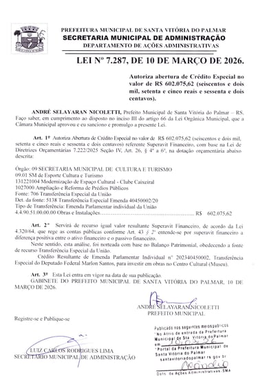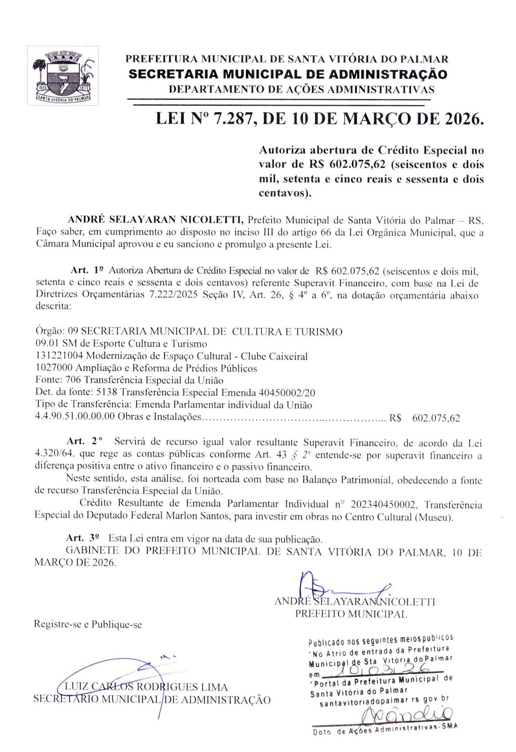 LEI Nº 7.287, DE 10 DE MARÇO DE 2026.