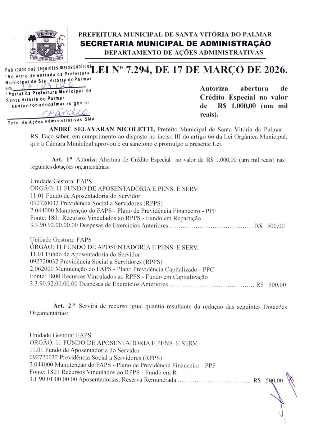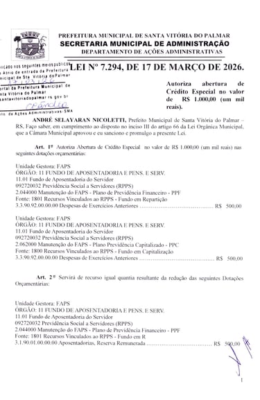 LEI Nº 7.294, DE 17 DE MARÇO DE 2026.