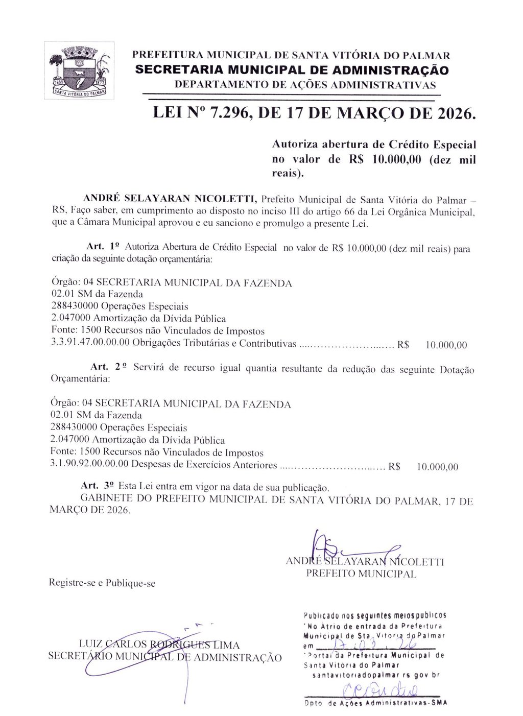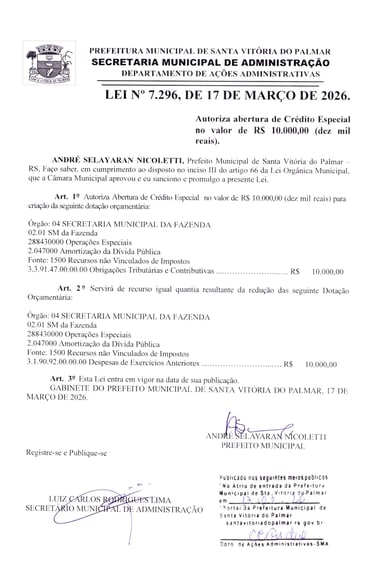 LEI Nº 7.296, DE 17 DE MARÇO DE 2026.