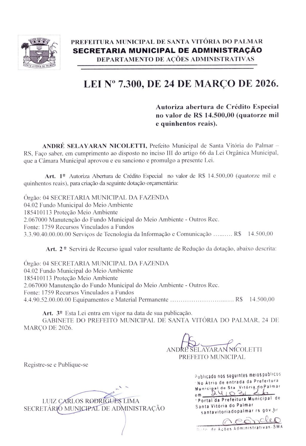 LEI Nº 7.300, DE 24 DE MARÇO DE 2026.
