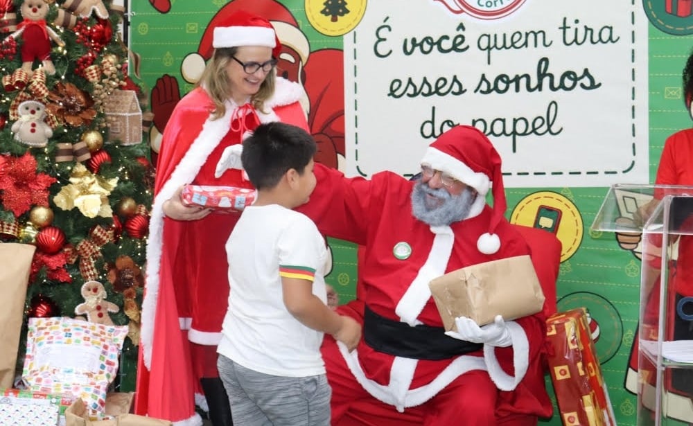 No Rio Grande do Sul, foram cerca de 5,6 mil cartas adotadas na campanha deste ano em oito municípios participantes: Porto Alegre, Caxias do Sul, Novo Hamburgo, Passo Fundo, Pelotas, Santa Cruz do Sul, Santa Maria e Santo Ângelo. A entrega festiva, que celebrou a etapa de distribuição de presentes no estado, aconteceu no último dia 15, na agência central dos Correios da capital gaúcha. Alunos de uma turma de 1º ano de uma escola estadual estiveram no evento representando as milhares de crianças beneficiadas pela campanha neste ano e receberam os presentes diretamente das mãos do Papai Noel. “Eu ganhei exatamente o que eu queria”, contou Nicolas, empolgado com um par de patins que carregava. Carrinhos, mochilas, bonecas, bolas e outros brinquedos também estiveram entre os presentes entregues.