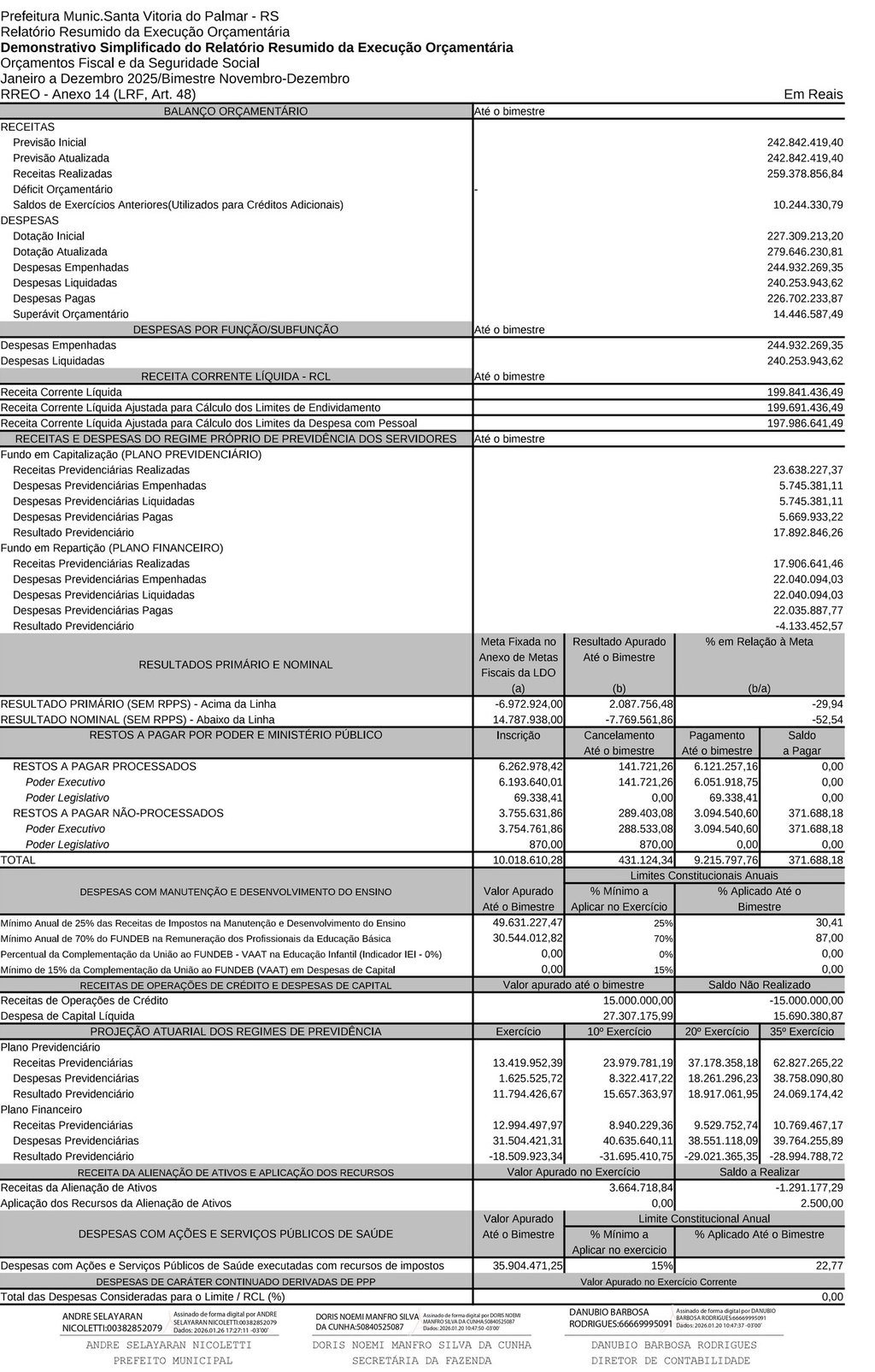 DEMONSTRATIVO SIMPLIFICADO DO RELATÓRIO RESUMIDO DA EXECUÇÃO ORÇAMENTÁRIA - ORÇAMENTO FISCAL E SEGURIDADE SOCIAL JANEIRO A DEZEMBRO 2025 /BIMESTRE NOVEMBRO -DEZEMBRO