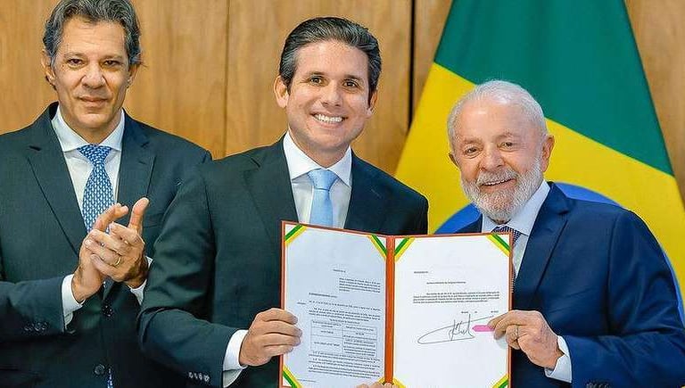 Haddad, Motta e Lula em março, durante cerimônia que marcou o envio do projeto da isenção ao Congresso