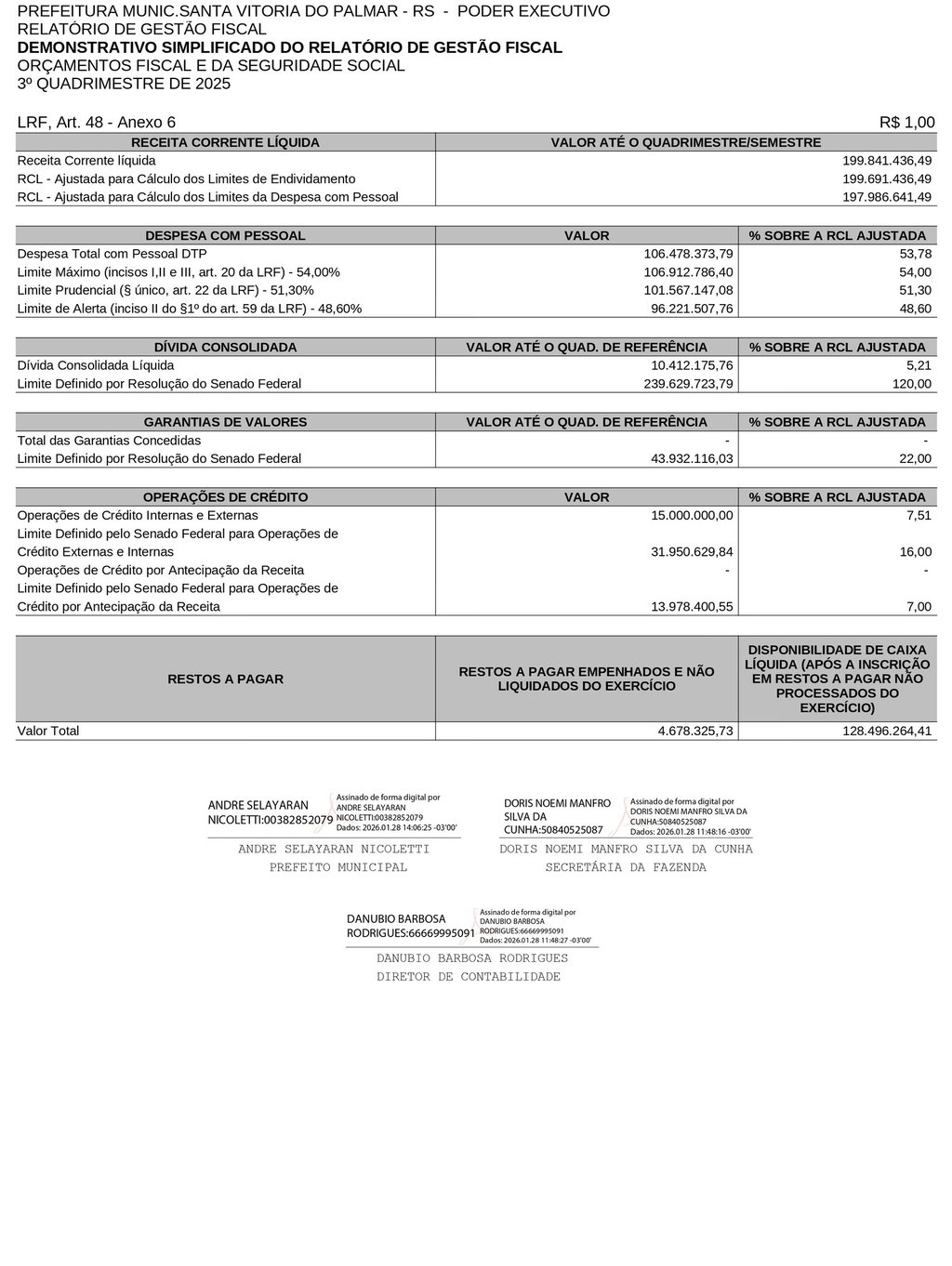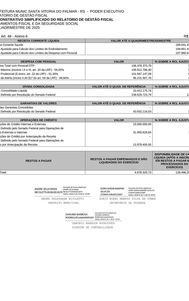 DEMONSTRATIVO SIMPLIFICADO DO RELATÓRIO DE GESTÃO FISCAL ORÇAMENTOS FISCAL E DA SEGURIDADE SOCIAL 3º QUADRIMESTRE DE 2025