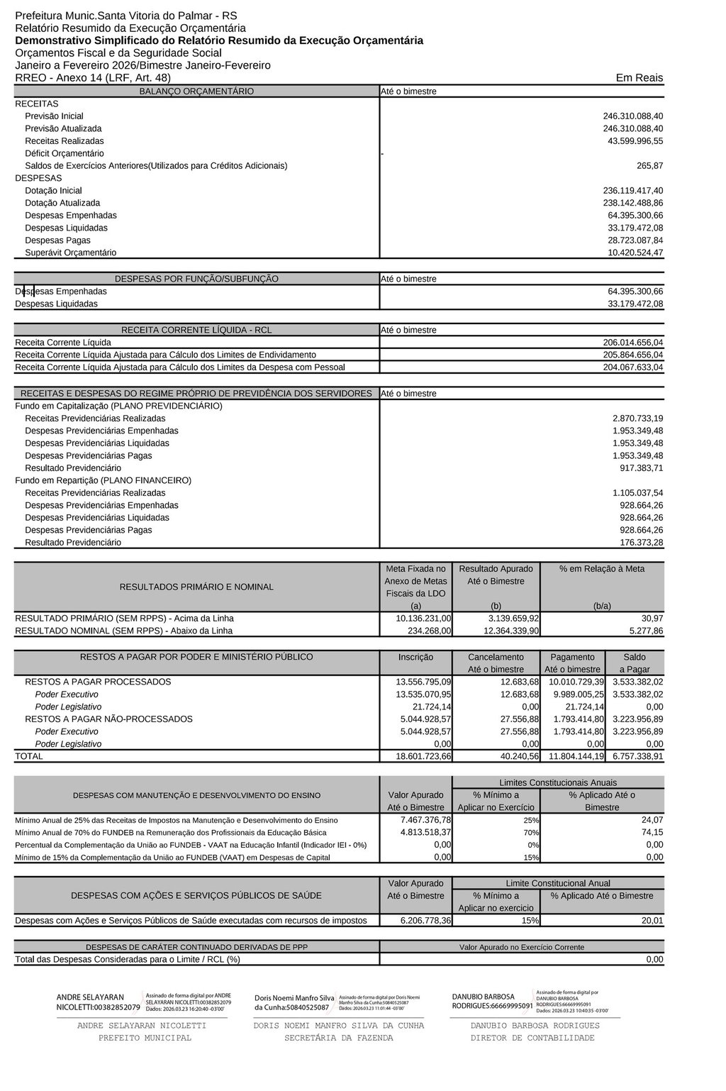 Demostrativo Simplificado do Relatorio Resumido da Execução Orçamentária-Janeiro a Fevereiro de 2026