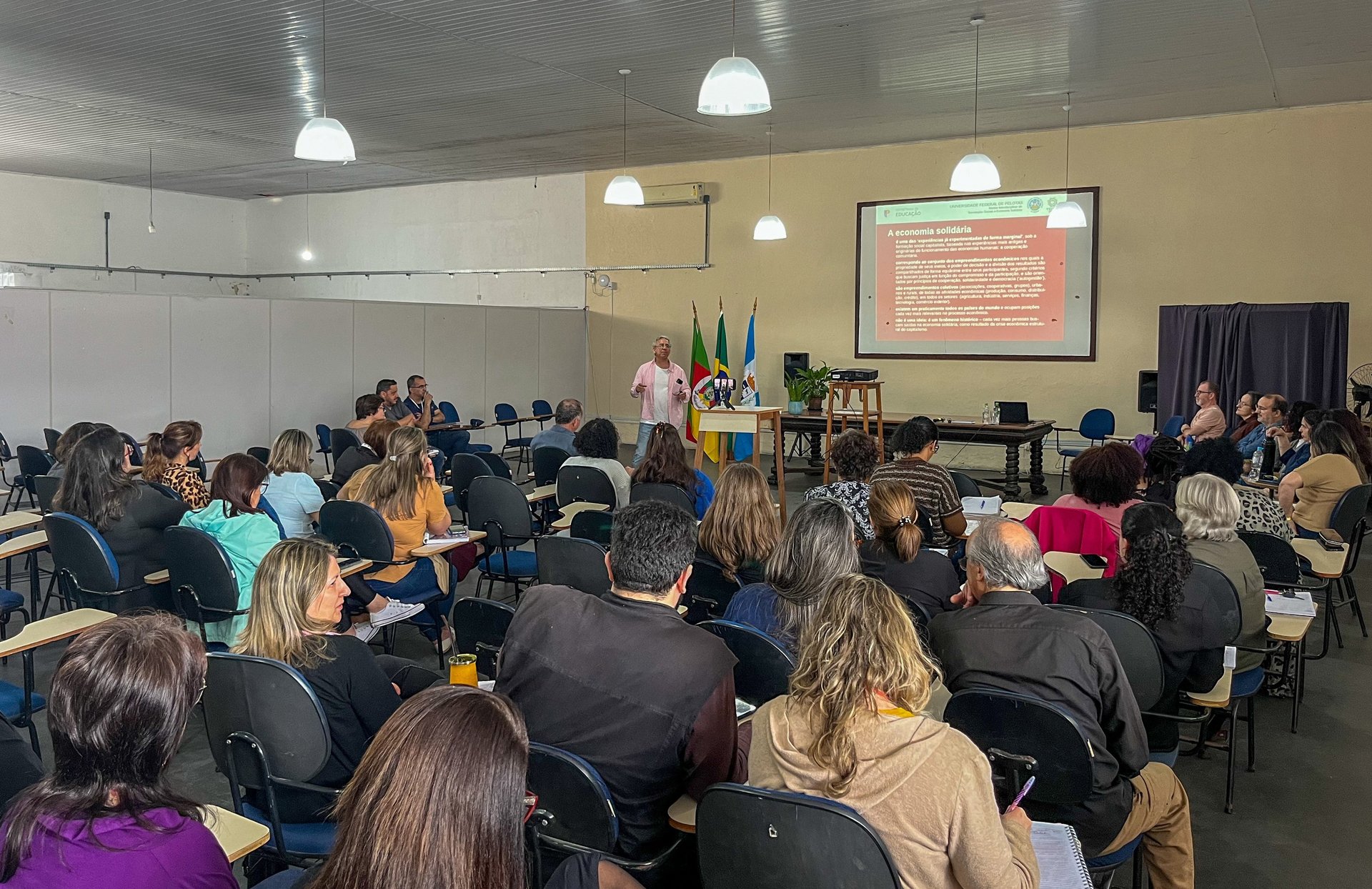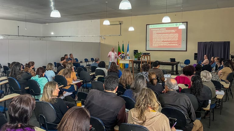 Quarta-feira (15), foi realizada a primeira edição de formação interna de Empreendedorismo Solidário no auditório da Secretaria de Educação (SME). A ação, em parceria com o Núcleo Interdisciplinar de Tecnologias Sociais e Economia Solidária (Tecsol) da Universidade Federal de Pelotas (UFPel) busca abordar a economia solidária com o objetivo de apresentar uma nova perspectiva às disciplinas da matriz curricular das escolas que abordam esse tema.
